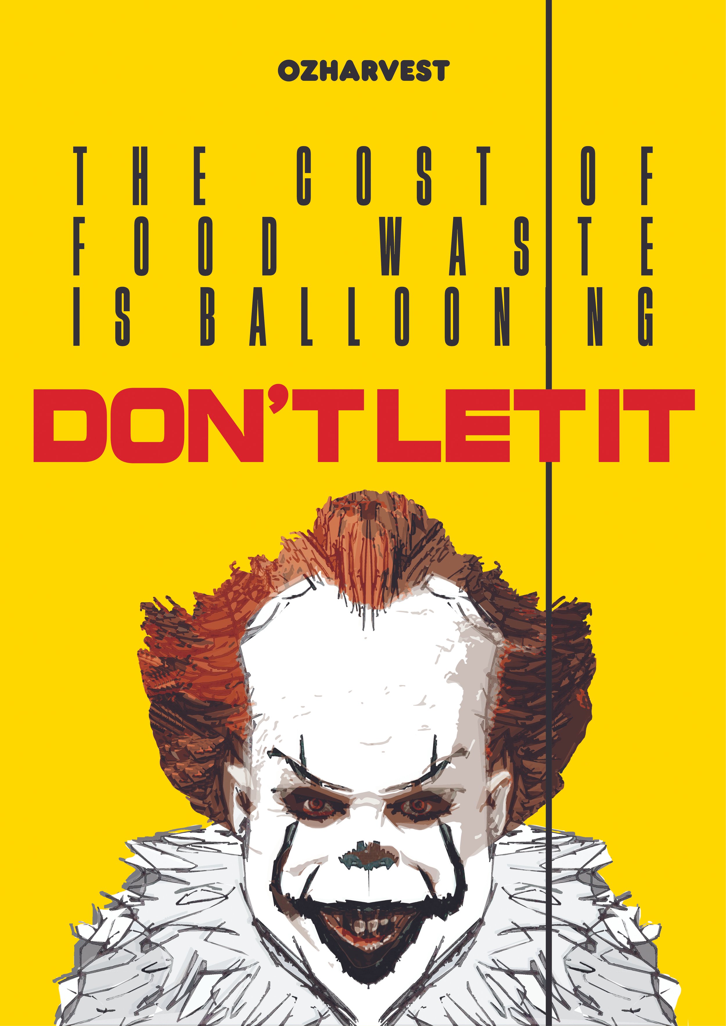 By fusing its bright yellow palette with horror-film iconography, it reframes food waste as the real monster.